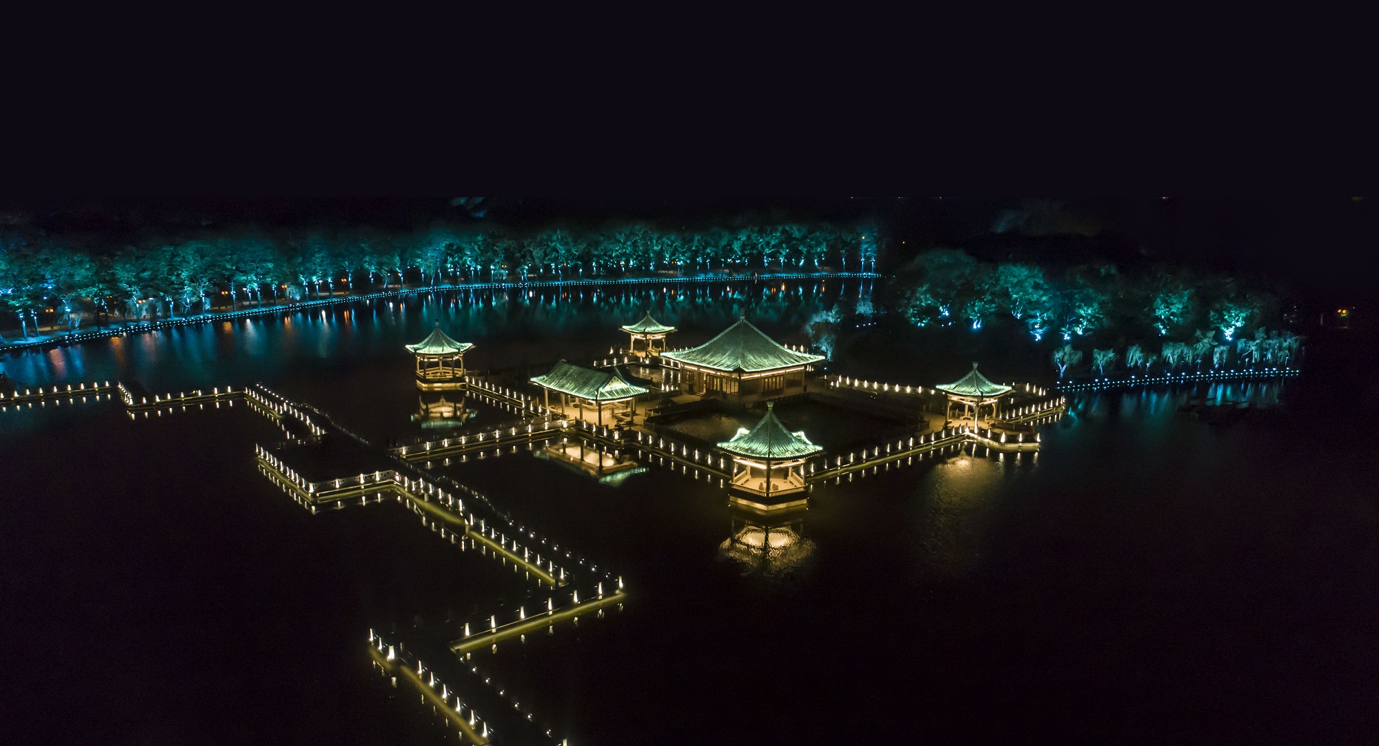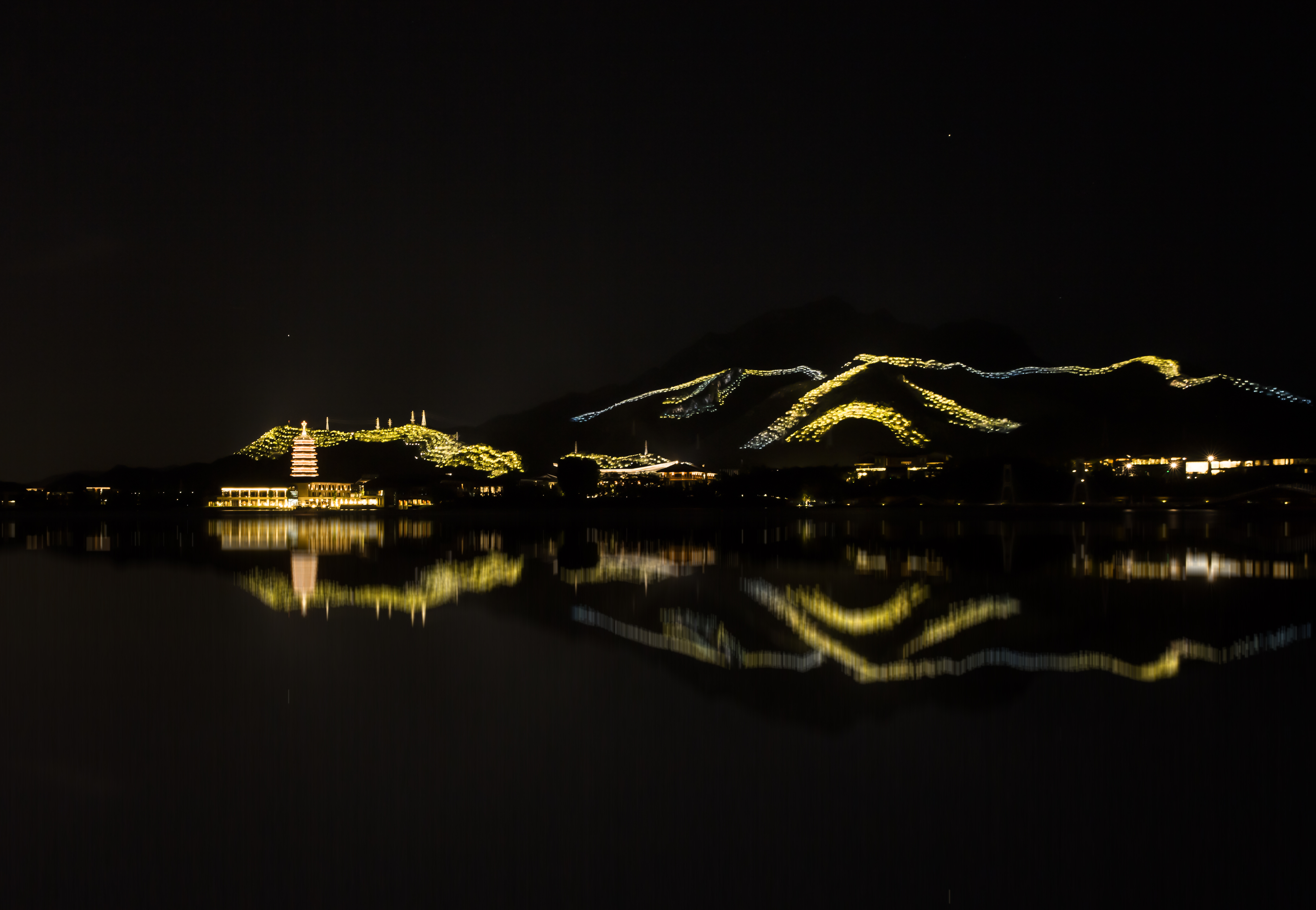 雁棲湖位于北京懷柔城北8公里處的燕山腳下,風(fēng)光旖旎,湖水清澈,其夜景景觀覆蓋了21平方公里的山體和沿線公路。最初,雁棲湖夜景打造是為迎接“一帶一路”會(huì)議的到來(lái),并成功在會(huì)議期間吸引了世人的矚目,在會(huì)議結(jié)束后,雁棲湖也成為了人們夜游的圣地。