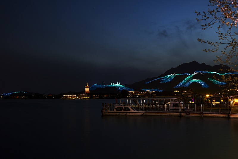 雁棲湖位于北京懷柔城北8公里處的燕山腳下,風(fēng)光旖旎,湖水清澈,其夜景景觀覆蓋了21平方公里的山體和沿線公路。最初,雁棲湖夜景打造是為迎接“一帶一路”會(huì)議的到來(lái),并成功在會(huì)議期間吸引了世人的矚目,在會(huì)議結(jié)束后,雁棲湖也成為了人們夜游的圣地。