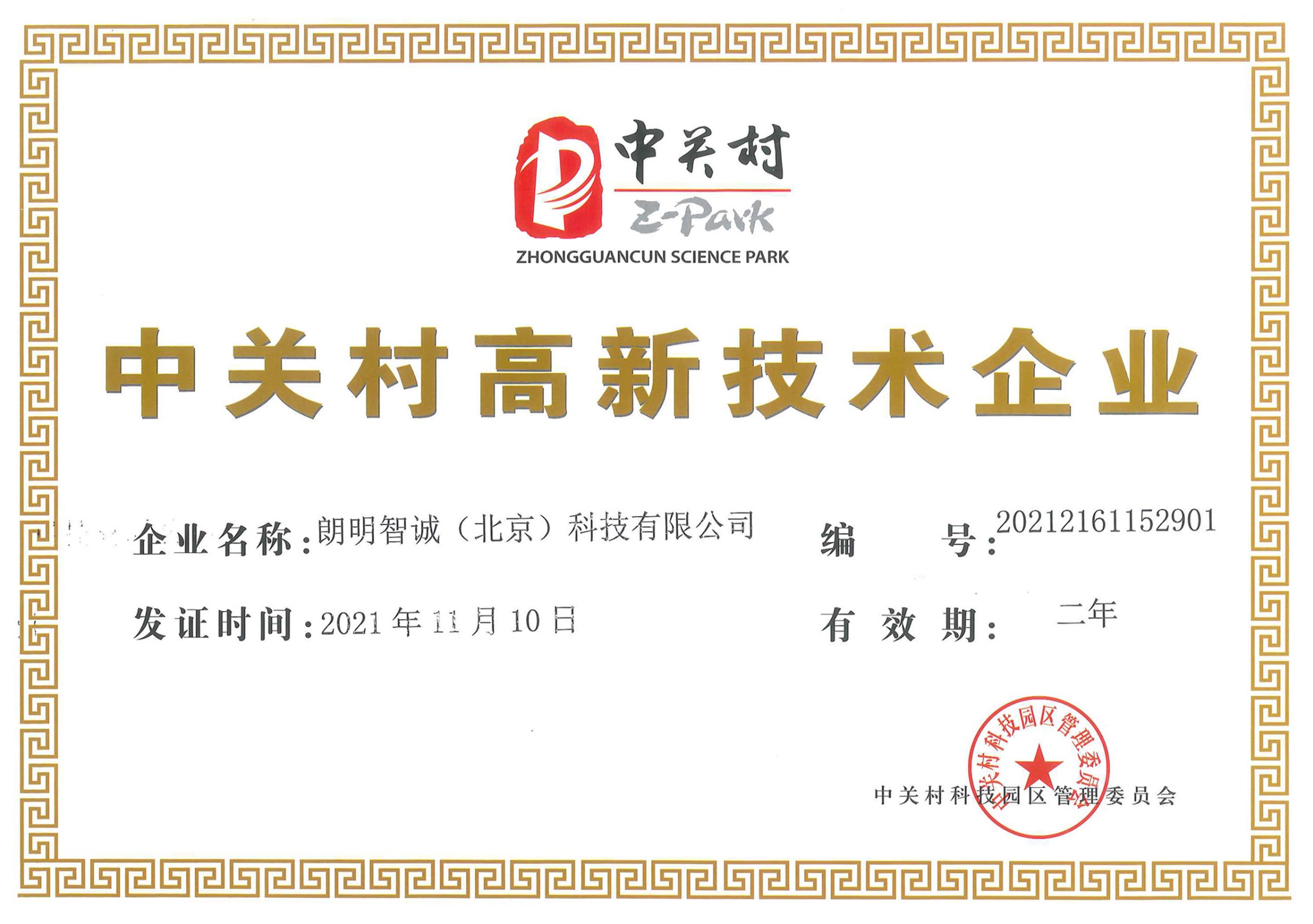 經(jīng)中關(guān)村高新技術(shù)委員會評審核準(zhǔn),朗明智誠(北京)科技有限公司于2021年11月10日,榮獲“中關(guān)村高新技術(shù)企業(yè)”。
